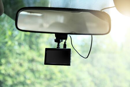 video recorder under view mirror in car, camera for recorder when driving