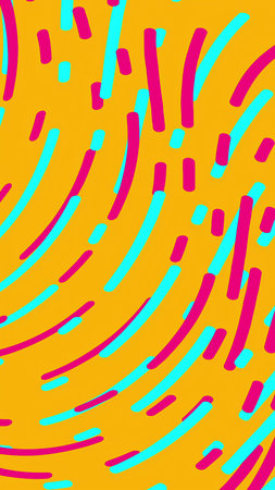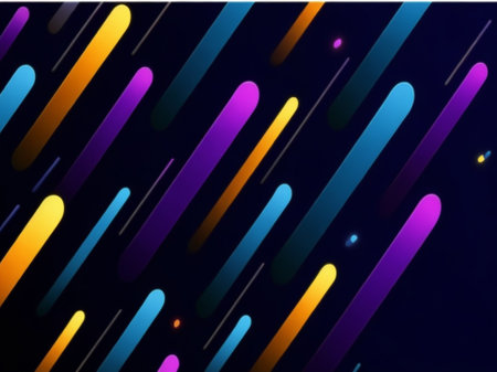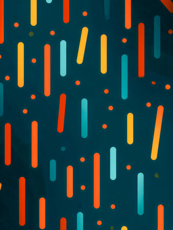 A lively arrangement of vivid rectangles and dots set against a dark backdrop, forming an energetic, contemporary pattern ideal for creative projects and digital designs.