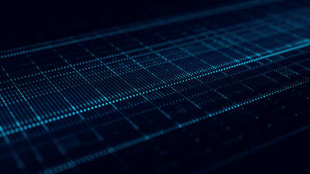 Digital database cyberspace. Decoding algorithms hacked software. Cyber security with moving blue particles. Big data visualization. 3d rendering.