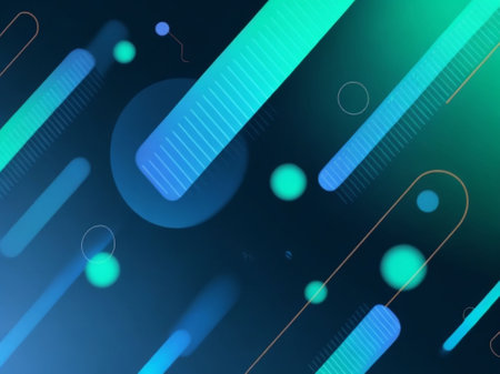 Bright abstract background featuring colorful shapes and dots on a blue canvas, perfect for creative projects and contemporary art themes.