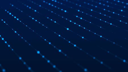 Digital background with movement of glowing particles. Complex technologies of big data. 3D.