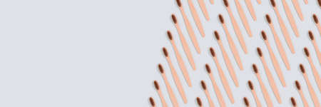 Banner with toothbrushes pattern on a blue background. Zero waste cover with place for text.