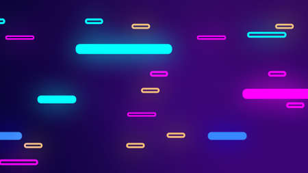 3D rendering of glowing multi-colored stripes in space located at different distances from each other. Bright backdrop for unusual demonstrations and presentations
