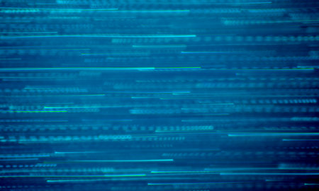Abstract blue lines form a futuristic tech pattern on a dark background, creating a modern design.