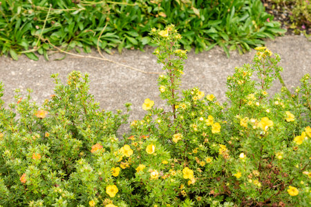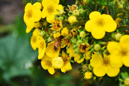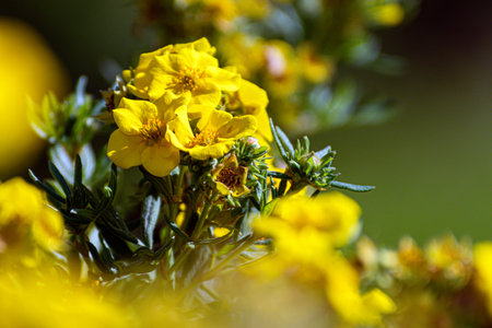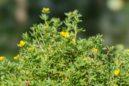 Flowers of the shrubby yellow cinquefoil in the garden.