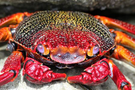Close up of a red rock crab on the beach in Thailand.