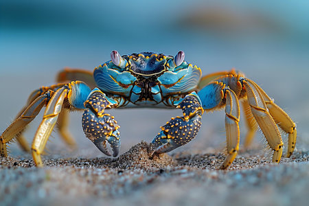 A stunning close-up of a crab showcasing its strong claws and intricate details. Captured in a natural habitat, this image highlights the beauty of wild marine life.
