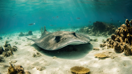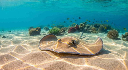 Large Stingray on the seabed on a tropical coral reef