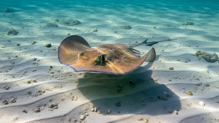 Southern Stingray in a shallow Caribbean coral lagoon