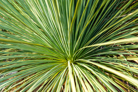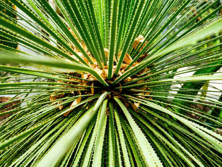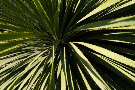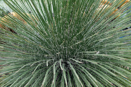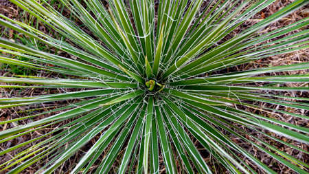 Amazing leaves of yucca plant. Beautiful green texture in the form of divergent rays.