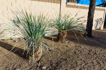 Asparagus family member of Desert Spoon (Dasylirion Wheeleri also known as Sotol) along xeriscaped city street in Phoenix, Arizoa