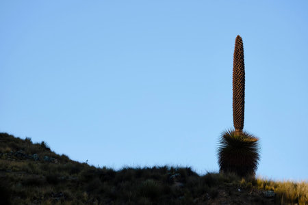 Titanka (Puya raimondii), a beautiful specimen in a beautiful landscape of a puya that has reached maturity and completed its inflorescence phase, is an endangered species.