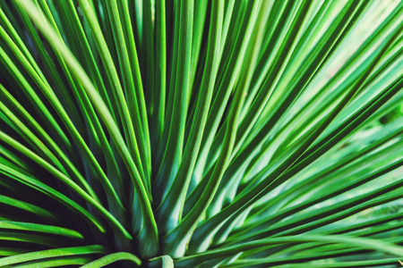 close up view of fresh green tropical plant yucca leaves for background
