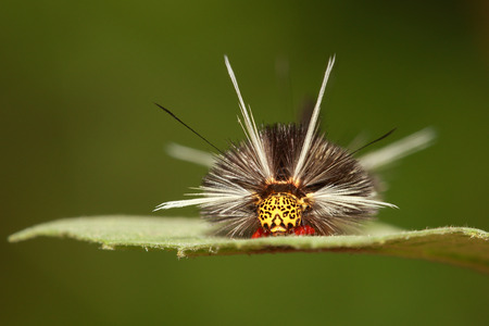 Black and yellow hairy caterpillar with strange mouth parts Asia.