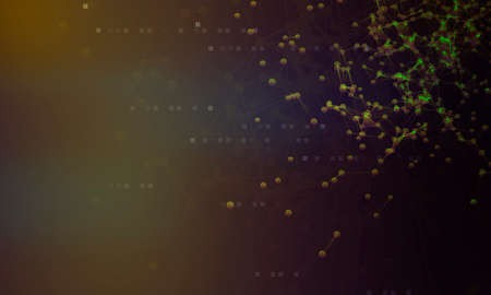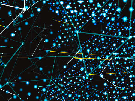 Glowing nodes with variational lines, 3d rendering. Computer digital drawing.
