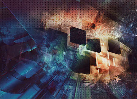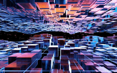 Cubic cyberpunk space, conceptual geometry background, 3d rendering. Computer digital drawing.