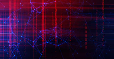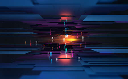 technology block chain internet binary program code with red and blue light 3d render illustration