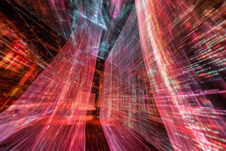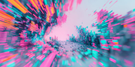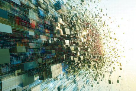 Abstract representation of data blocks dispersing dynamically into light, showcasing futuristic concepts by Generative Ai.