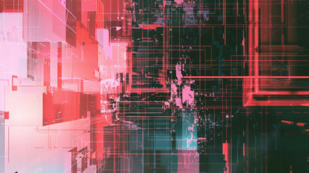 Digital glitches create a vibrant aesthetic in urban landscape of modern city