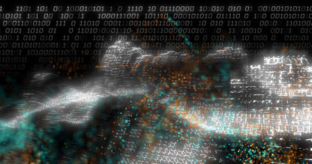 Digital image of binary coding data processing against microprocessor connections in background. school and education concept