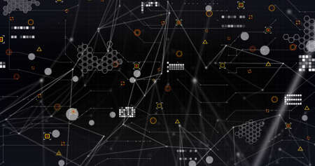 Image of data processing on black background. Global business and digital interface concept digitally generated image.