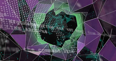 Abstract technology background with polygonal technology grid and data. Analytics data algorithms. Big Data. Computing concept. Banner for business, science and technology.