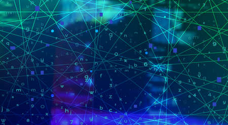 Abstract background with 3d grid color and data. Big data. Technology concept. Visual presentation on the analysis of big data. Banner for business, science and technology data analytics representation.