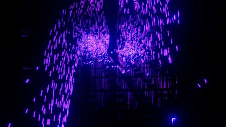 Magic multicolored sparkles of light with rays form flickering abstract simple structures like fiber optic or laser show with amazing bokeh for fantastic background. 3d render