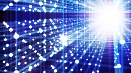 3d rendering of abstract blue background with glowing particles like micro world science fiction with depth of field and bokeh. Blue light rays like laser show for bright festive presentation