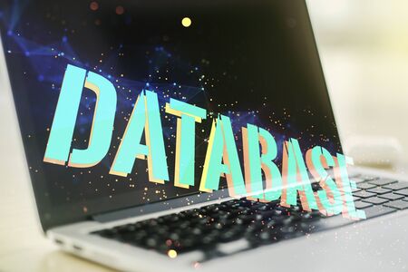 Double exposure of Database word sign on laptop background, global research and analytics concept