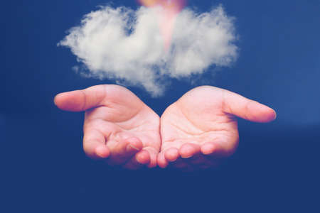 Man hand holding cloud computing concept in palm