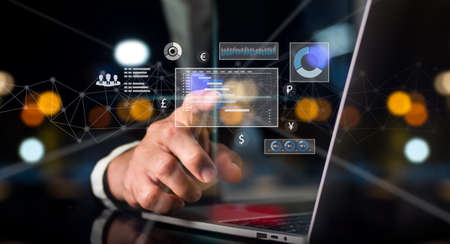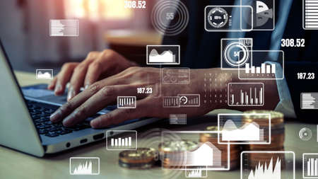 Business Analysis, Economic Growth, Finance with Virtual Graphs and Charts 2023.businessman using modern computer technology.