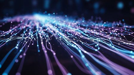 An abstract visualization of interconnected glowing lines and subtle particles, suggesting a digital network or data flow.