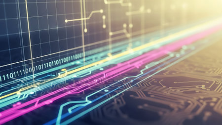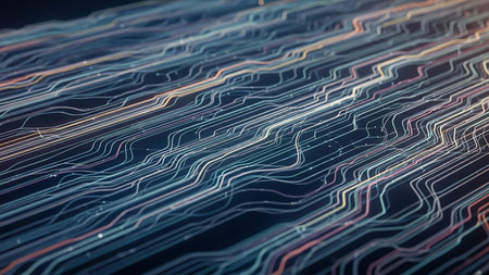 Immerse in an abstract digital landscape showcasing colorful lines in motion that represent data flow and technology themes, perfect for modern creative projects.