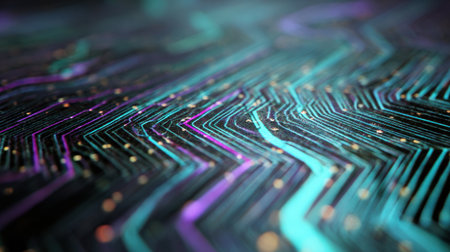 This abstract digital background features vibrant, glowing lines and intricate patterns, creating a futuristic and dynamic atmosphere perfect for tech-related projects.