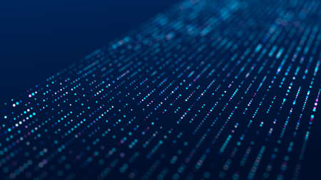 Digital background with moving glowing particles. Futuristic hi-tech illustration. Concept of data transfer in cyberspace. Big data visualization. 3d rendering.