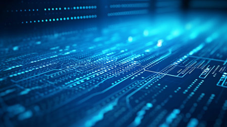 3d rendering of abstract technology background with circuit board and digital elements
