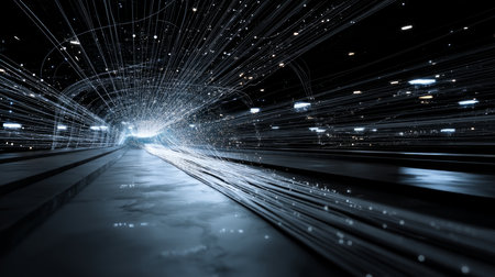 Abstract light tunnel representing quantum computing speed and parallel state execution