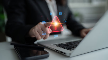 Person using a laptop computer with technology cybersecurity and privacy concept. protection and safe data for global network security.