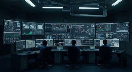 Stock market analysts monitoring real-time data, charts, and graphs