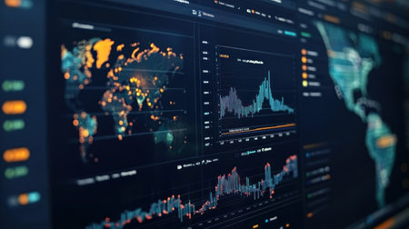 Global e-commerce dashboard displaying sales analytics, close-up of charts and graphs.