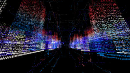 Background of many numbers. Animation. Coding of digital space with changing numbers vertically. Matrix multi-colored digital space