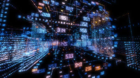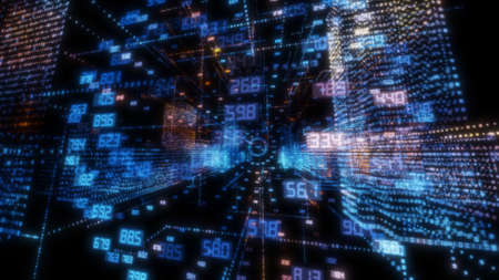 Abstract informational background with endless cells with numbers changing very fast.
