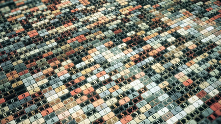 Dynamic movement on a virtual display of digits and characters. Animation. Software engineering, creating computer programming source code, seamless loop.