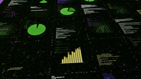 Abstract digital computer display with a business analytics program. Animation. Concept of internet and global communication.