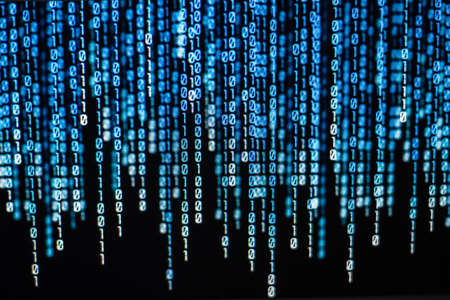 Digital binary code data on computer screen. Hacker concept background.