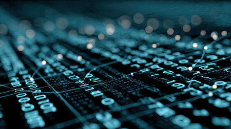 Digital data hex code symbols. Abstract information technology background. Computer generated raster illustration rendered with DOF
