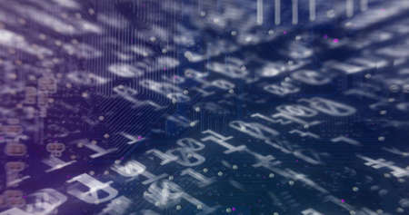 Composition of binary coding processing over computer circuit board. global connections, technology and digital interface concept digitally generated image.