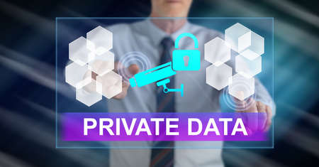Man touching a private data concept on a touch screen with his fingers