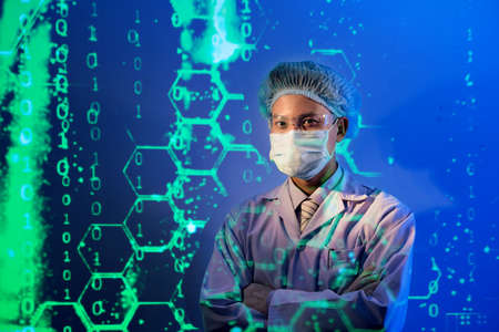 The picture of the professional geneticist that has been working about gene inside the laboratory, the geneticist require skills genetics knowledge, DNA analysis,experience and lab technique. AIG43.